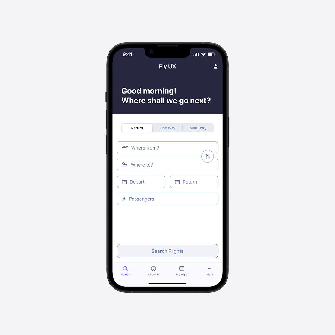 My client, a startup airline, wanted to create a faster, easier, and more intuitive mobile booking experience — one that feels clean, transparent, and grounded in real user needs.