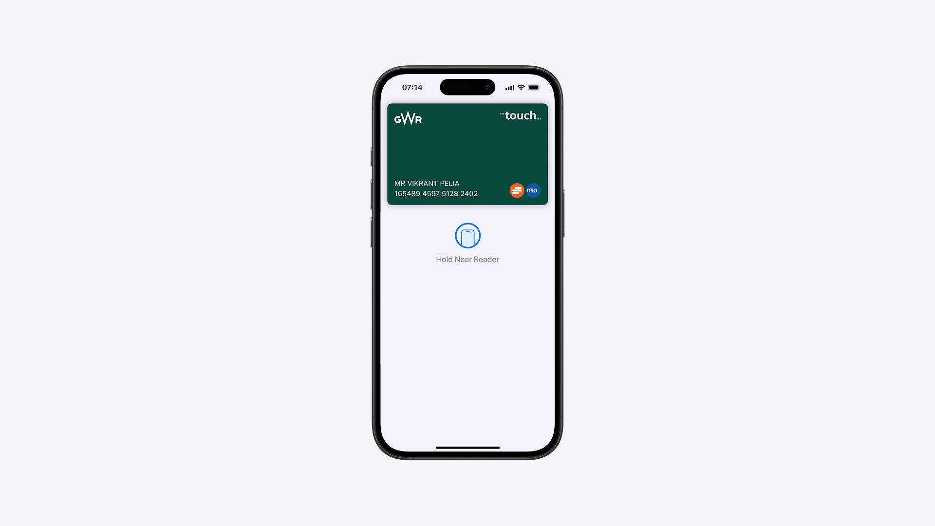 A digital GWR Smartcard in a smartphone wallet, enabling instant ticket access and tap-and-go travel.